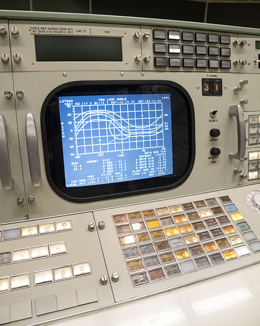 In fact, from this room, the NASA team exercised full mission control of Apollo 11 from launch at the Kennedy Space Center to splashdown in the Pacific Ocean. You can feel the history in the room from the monitors to the rotary dials.