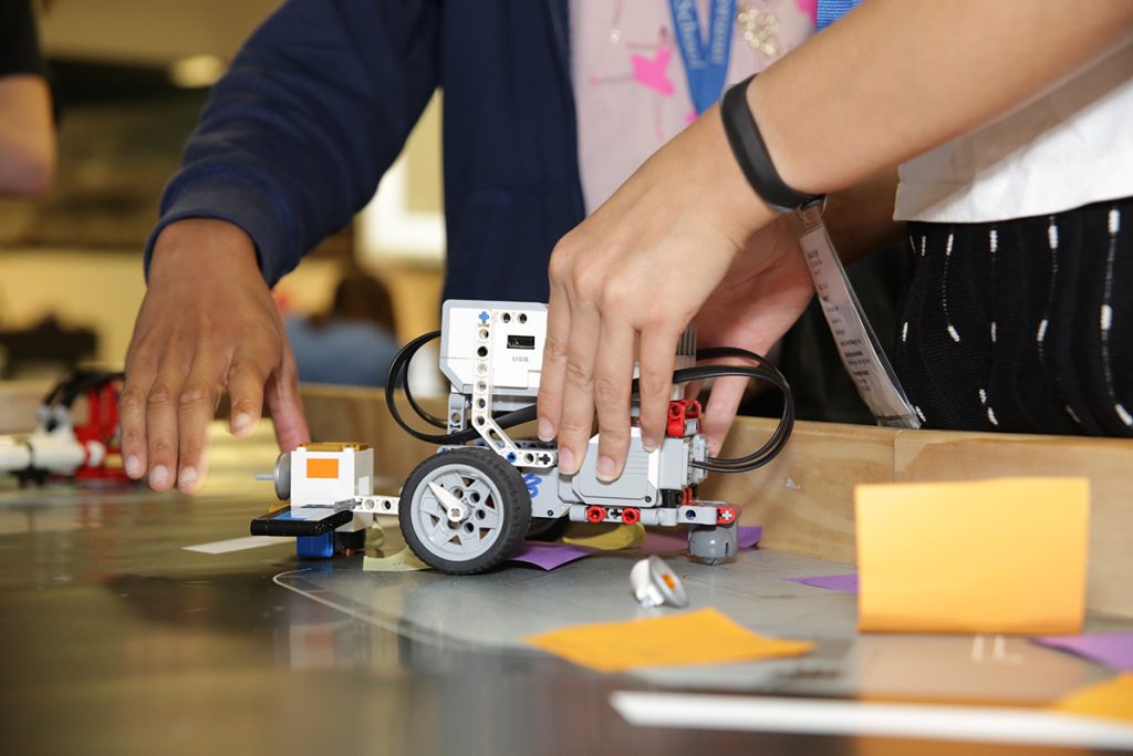 Participants will explore and accomplish tasks in space using a robotic rover based on a given set of parameters. Students will learn the math calculations needed to traverse the space field and to use sensors to improve accuracy. They also will translate the mathematic calculations into the coding instructions for their robot to ensure mission success!
