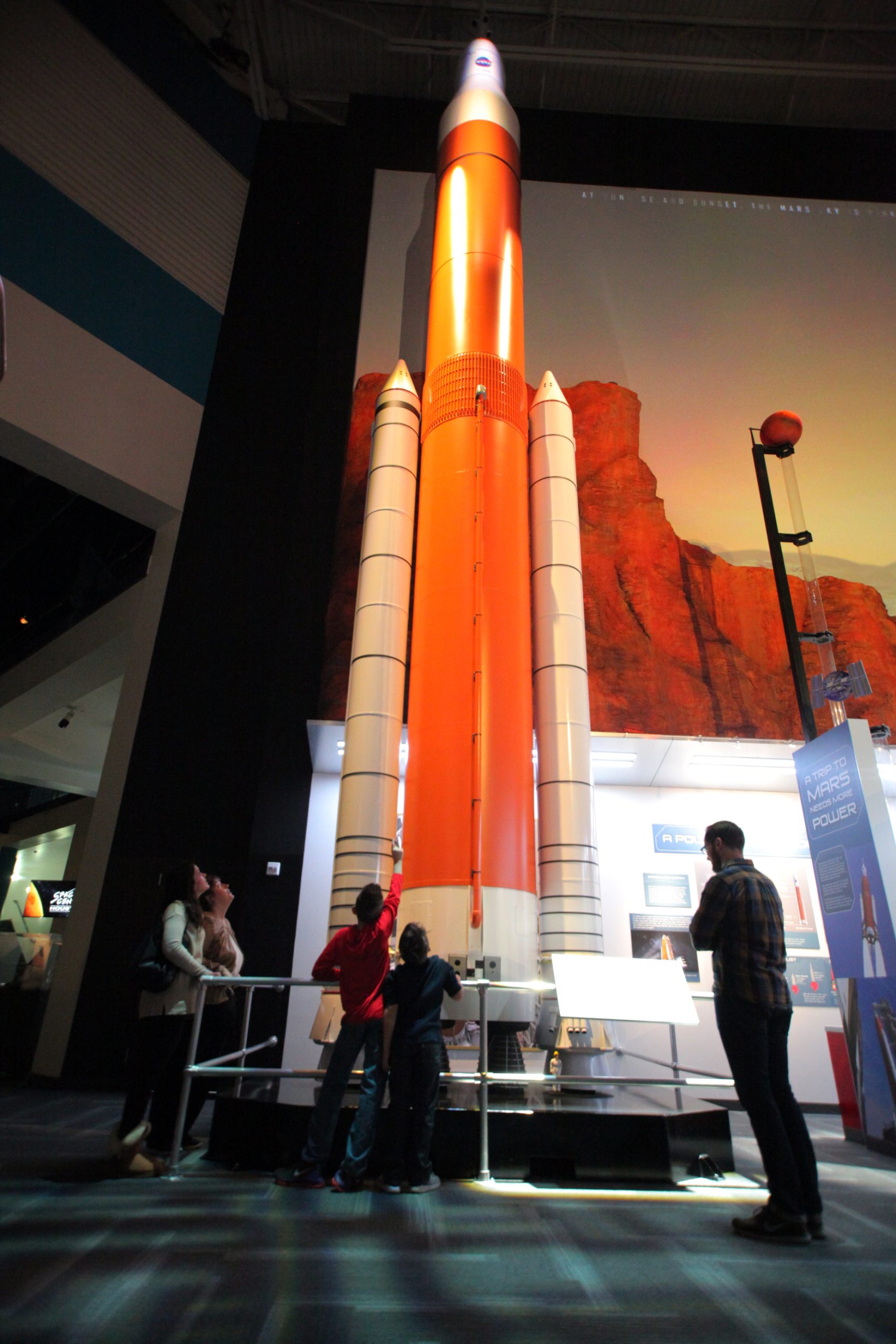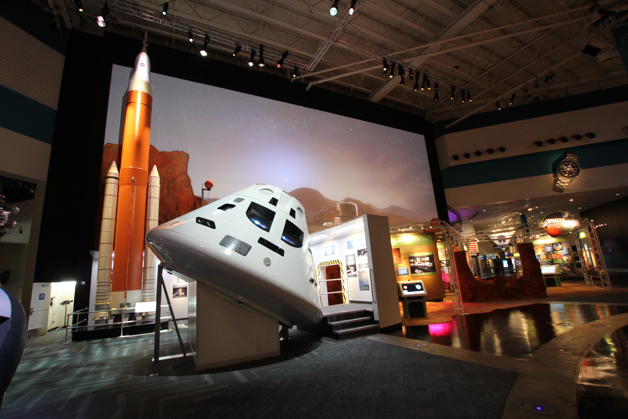 The Mission Mars exhibit gives visitors an up-close look at a magnificent 45-foot one-eighth scale model of the Space Launch System, which will be the most advanced and powerful deep space rocket ever produced. Visitors can explore what it takes to travel to Mars, the hardware that will get us to the fourth planet in our solar system and how humans may live and conduct research on the red planet in future decades.